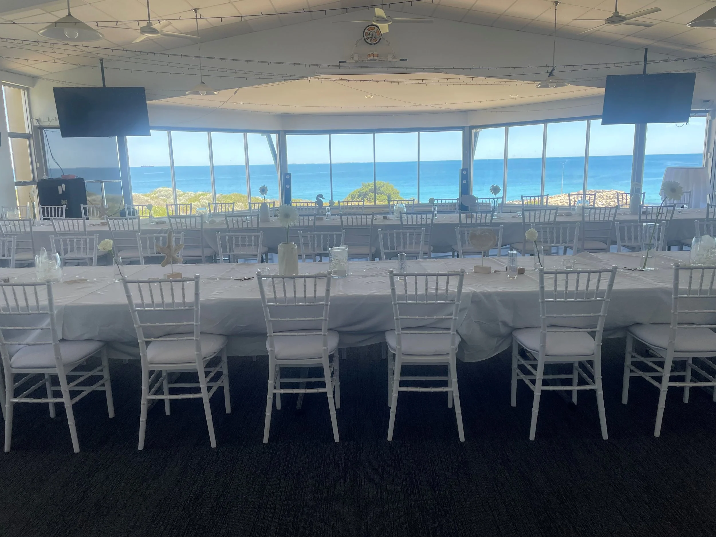 With four double glass doors that open up to a sweeping balcony facing North West there is simply no better venue for a costal wedding!